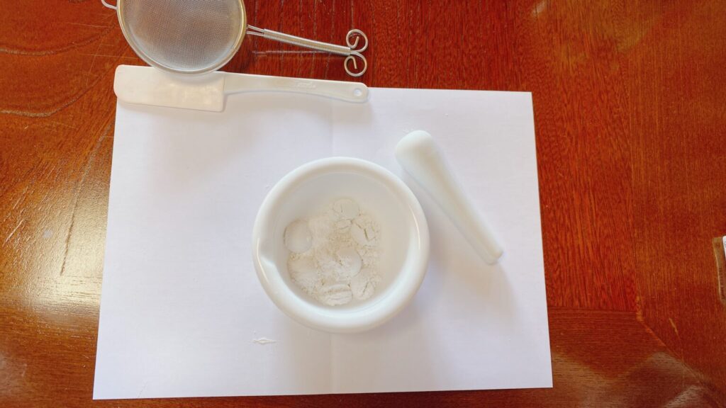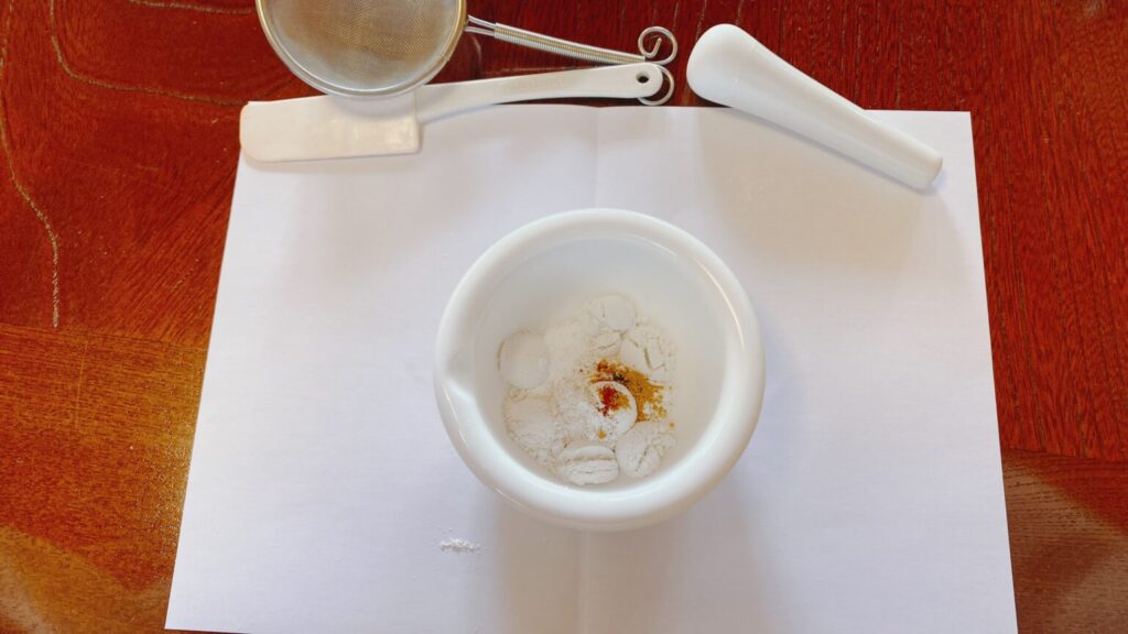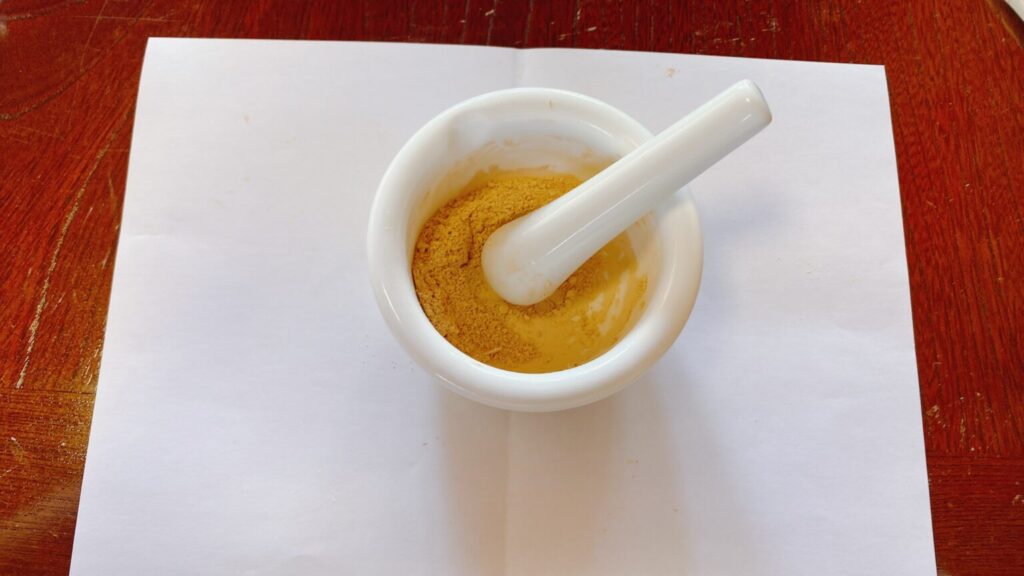 3色の無機顔料を上手に配合してくださります。あとは、ひたすら混ぜる。